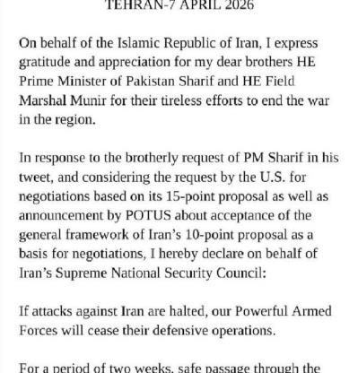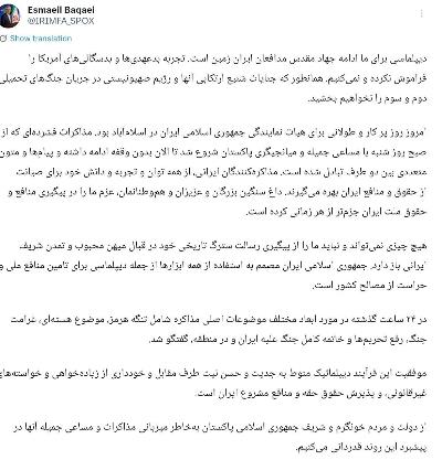 در جریان مذاکرات فشرده‌ای که در بالاترین سطح طی ۴۷ سال گذشته برگزار شد، ایران با حسن نیت وارد مذاکره با ایالات متحده شد تا به جنگ پایان دهد.